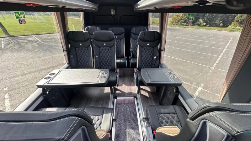 A luxurious Mercedes-Benz Sprinter minibus delivering comfort, reliability and a smooth group travel experience—every journey. Travel in style with elegance seating and luggage space.